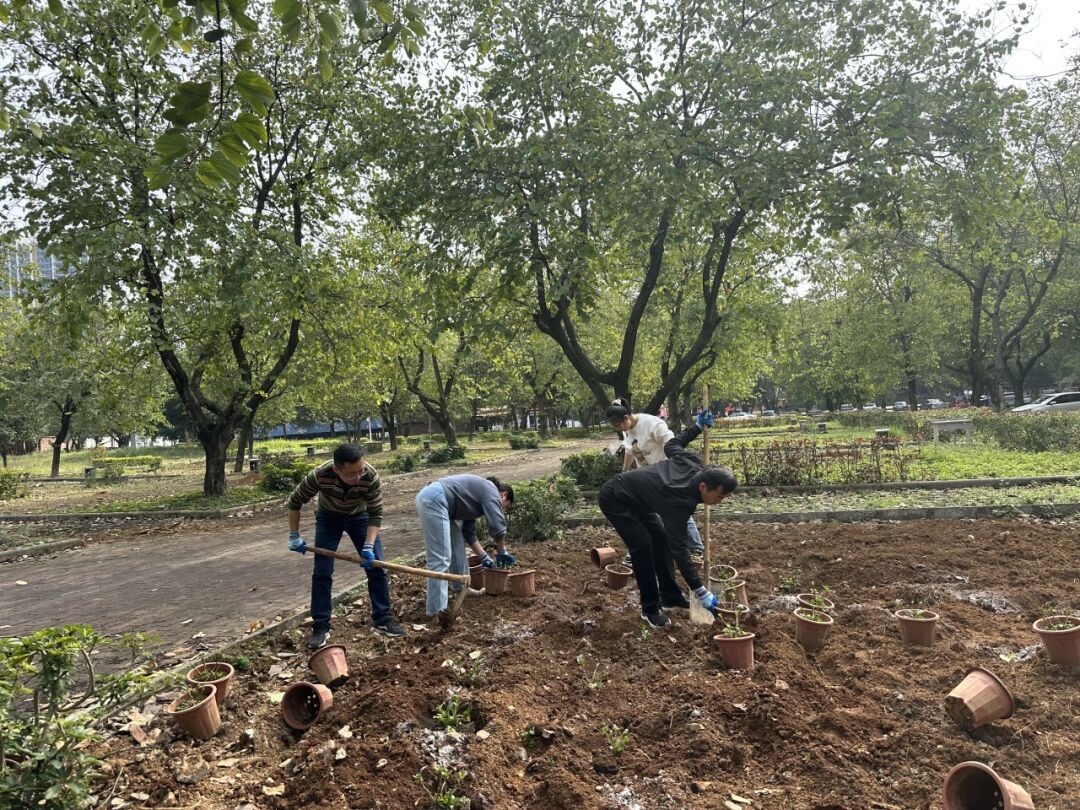 勞作現(xiàn)場(chǎng),大家踴躍參與、干勁十足,通力協(xié)作、默契配合,揮鍬填坑、放置樹(shù)苗、培土夯實(shí)、澆水施肥,各環(huán)節(jié)井然有序,最后完成了一百多棵樹(shù)苗種植工作。