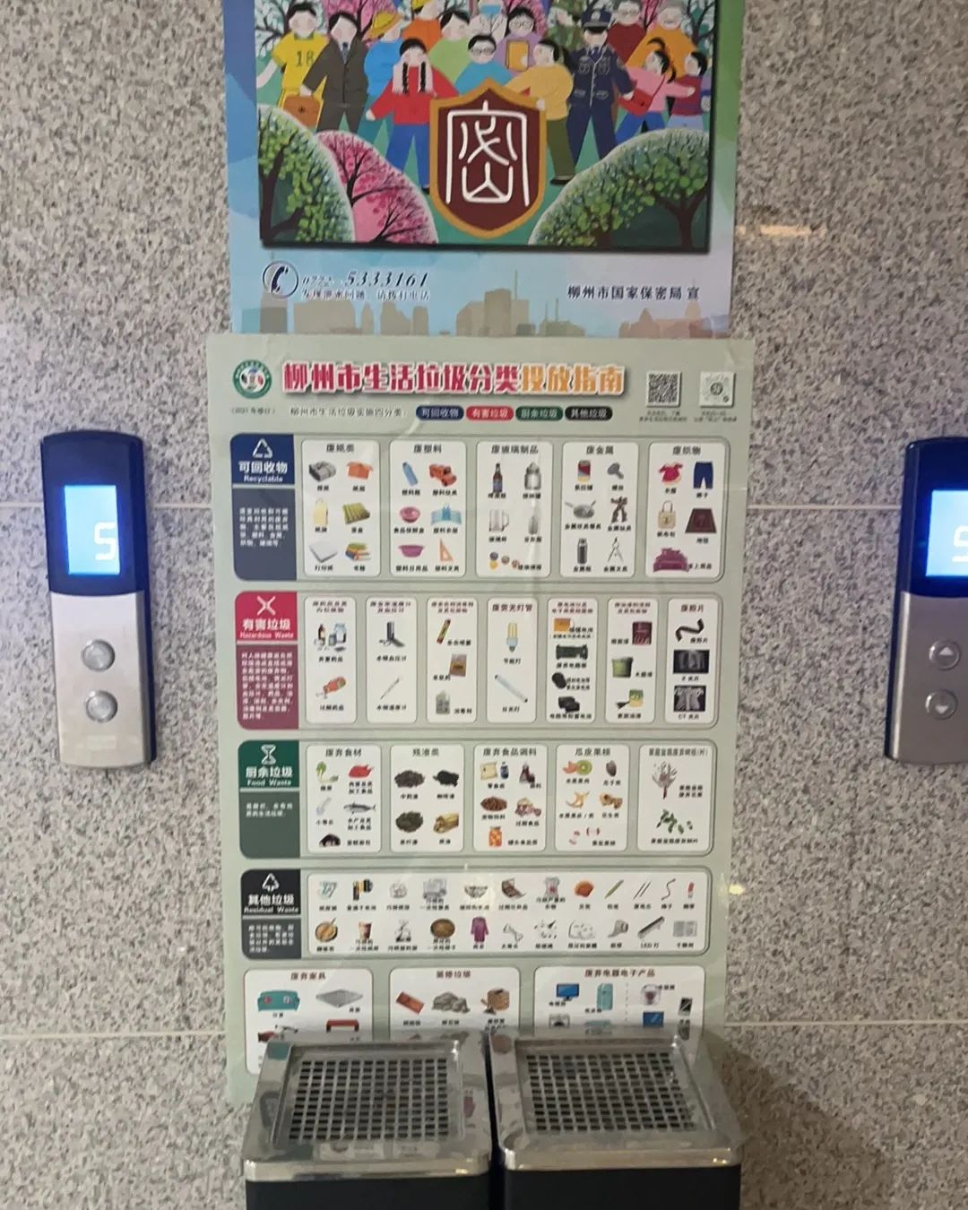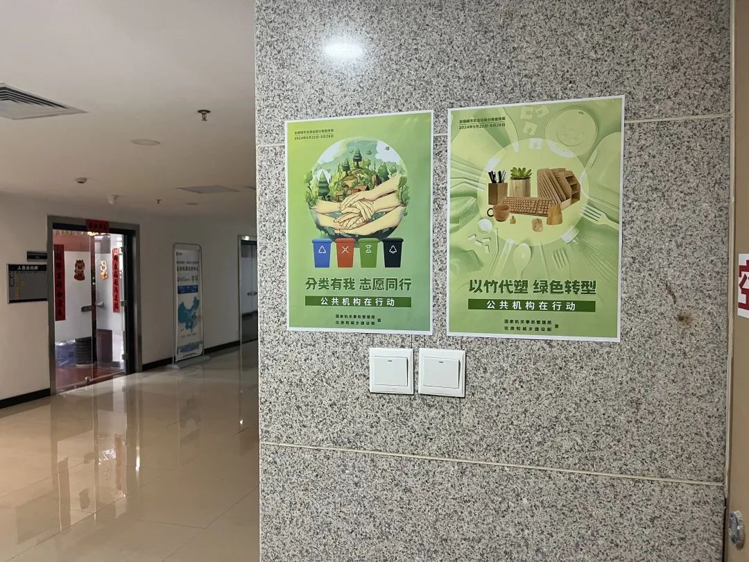 集團(tuán)總部辦公樓在電梯口、走廊等必經(jīng)公共場所張貼垃圾分類倡導(dǎo)海報(bào)、垃圾分類投放指南,潛移默化中增強(qiáng)員工環(huán)保意識。
