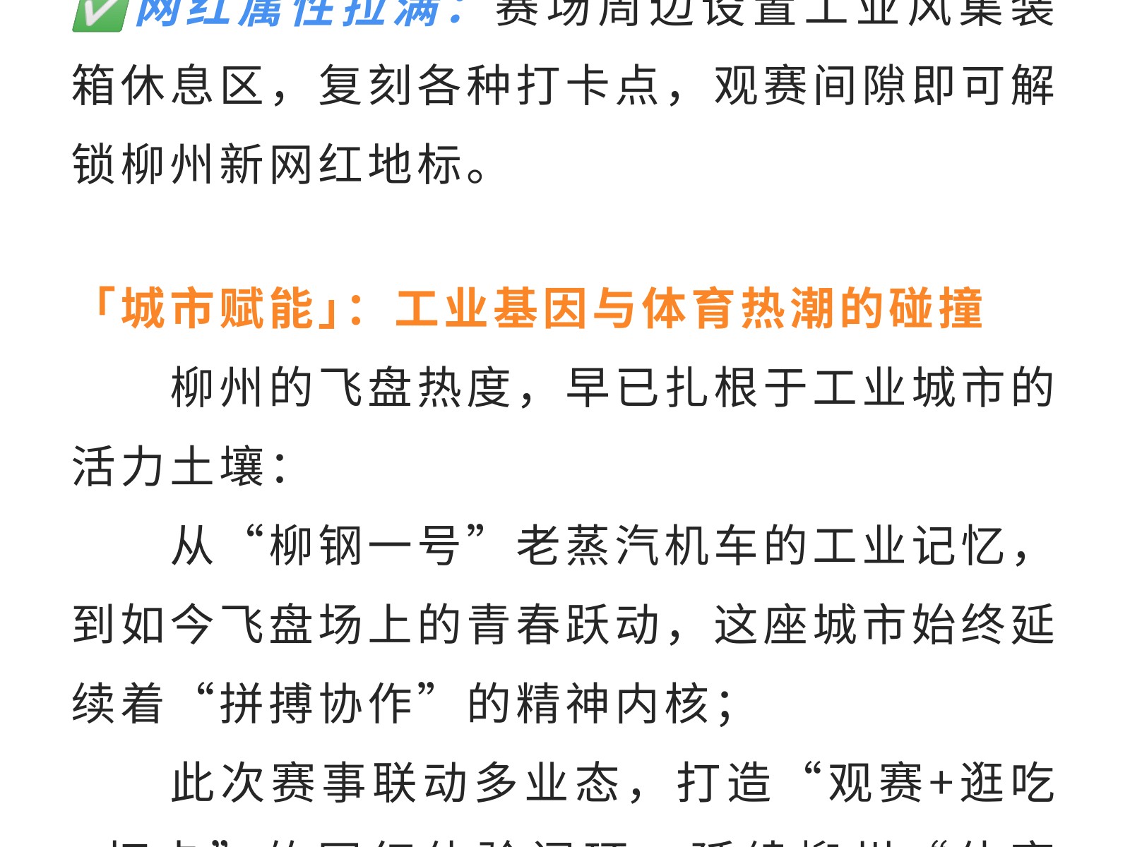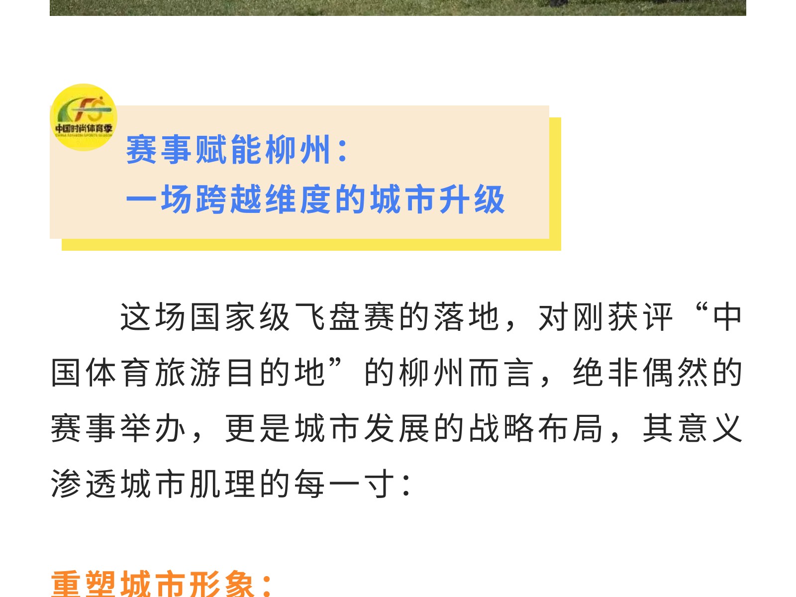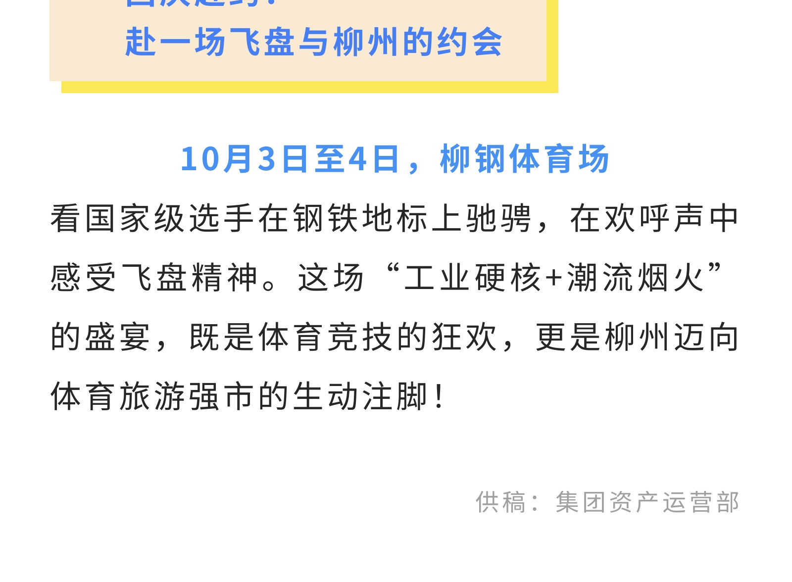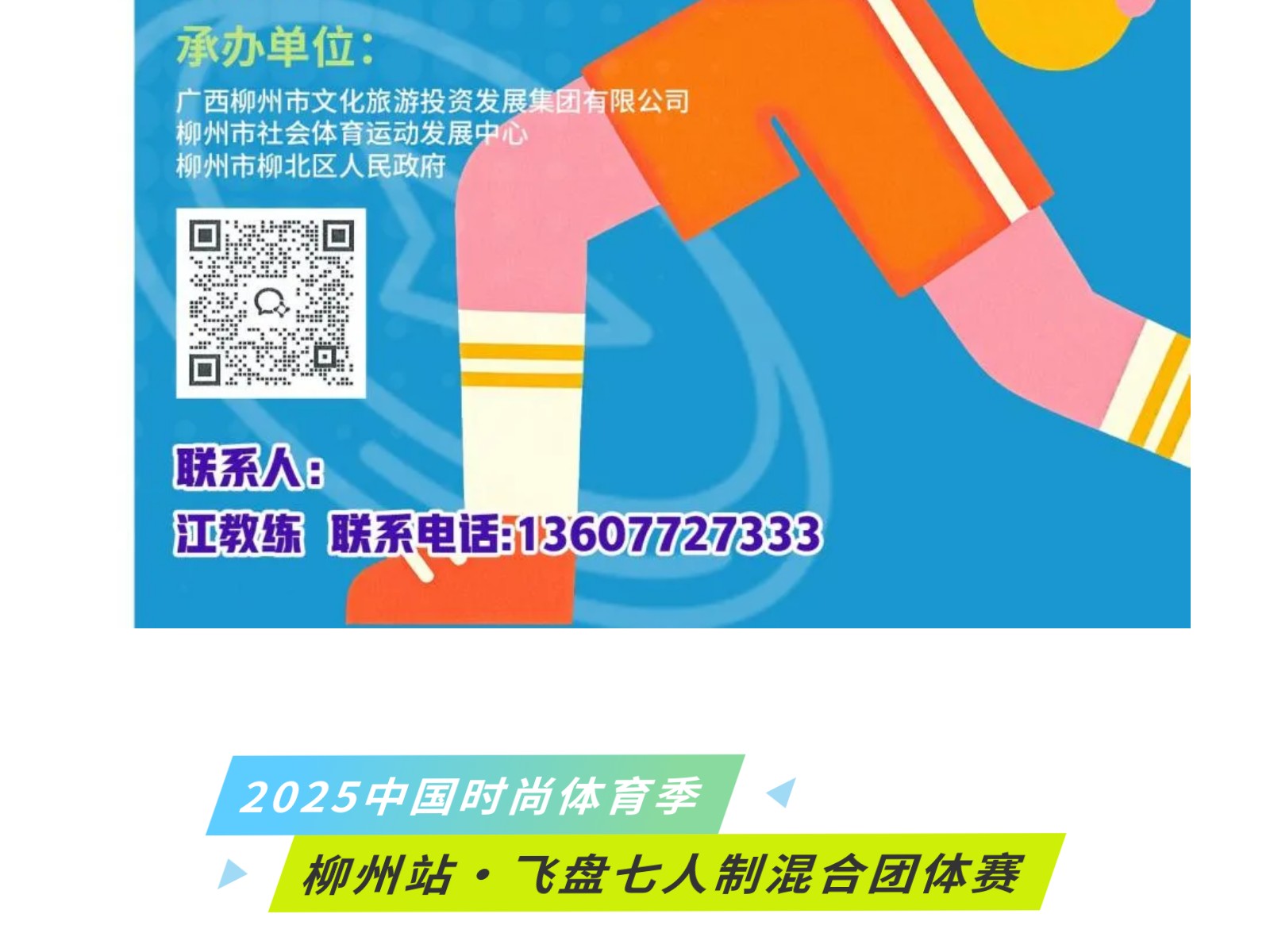 官宣!2025中國時尚體育季(柳州站)飛盤邀請賽來襲!10月3-4日燃情開幕! 發(fā)布時間:2025年09月27日 10時來源:本站原創(chuàng)瀏覽:136 人次