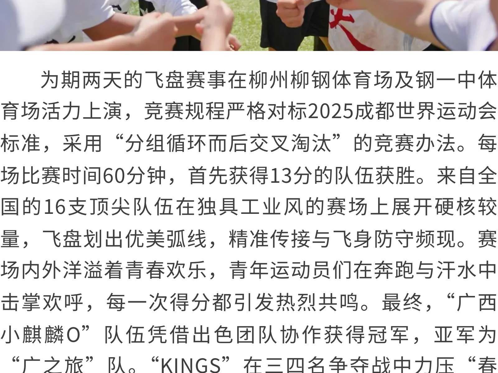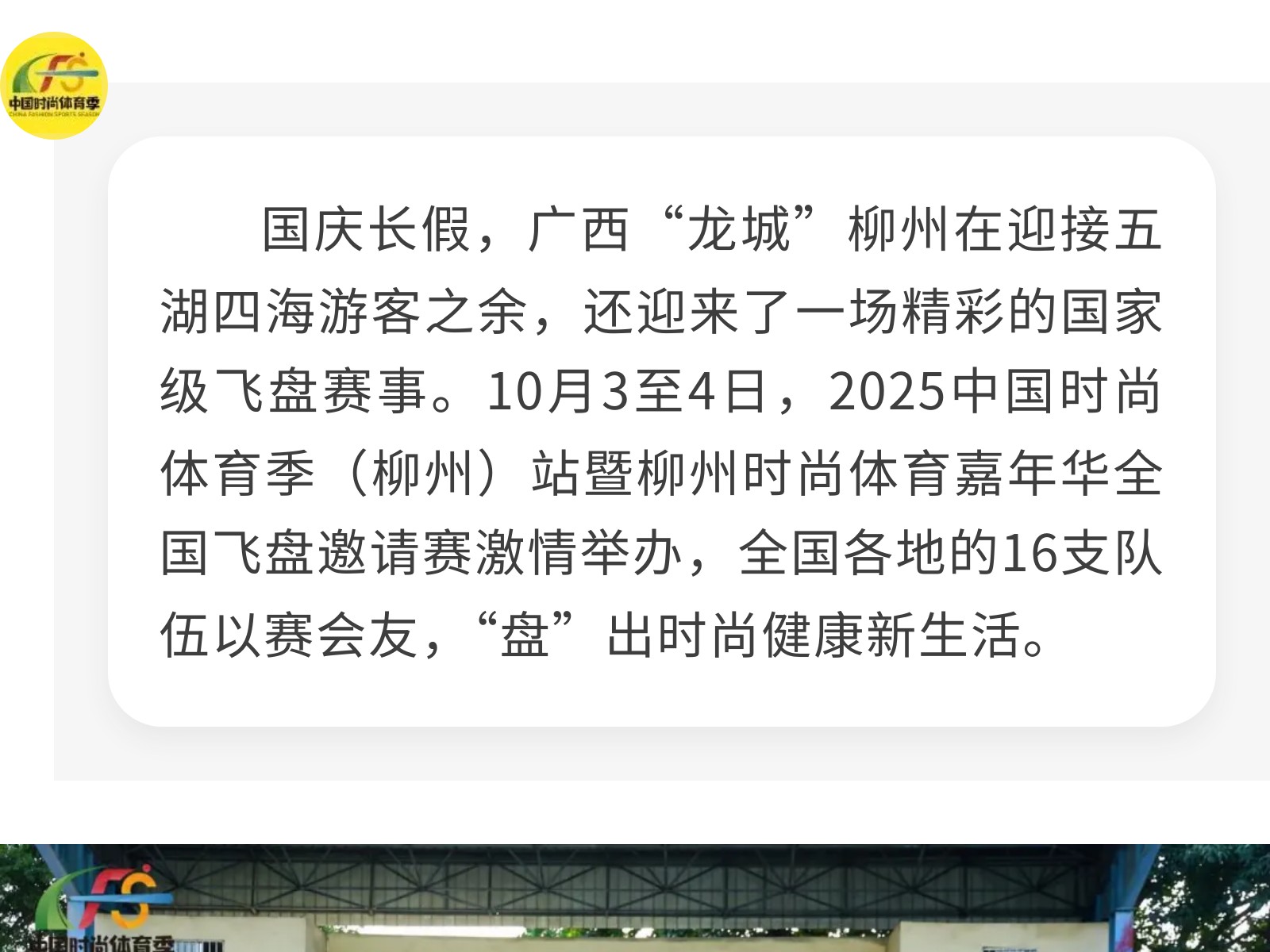 “盤”出時尚健康新生活,廣西柳州承辦國家級飛盤賽 發(fā)布時間:2025年10月05日 17時來源:本站原創(chuàng)瀏覽:150 人次