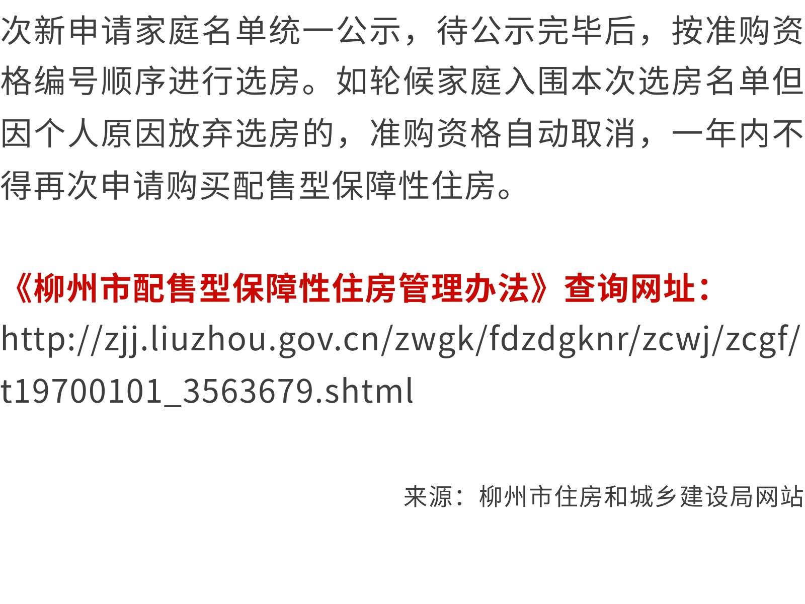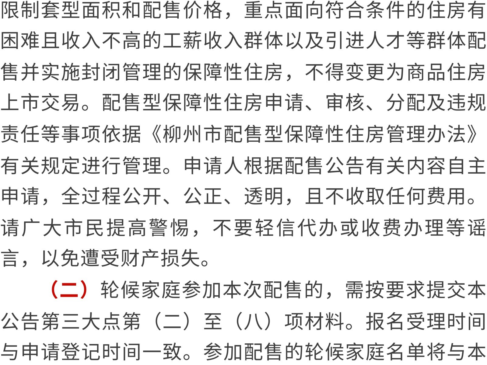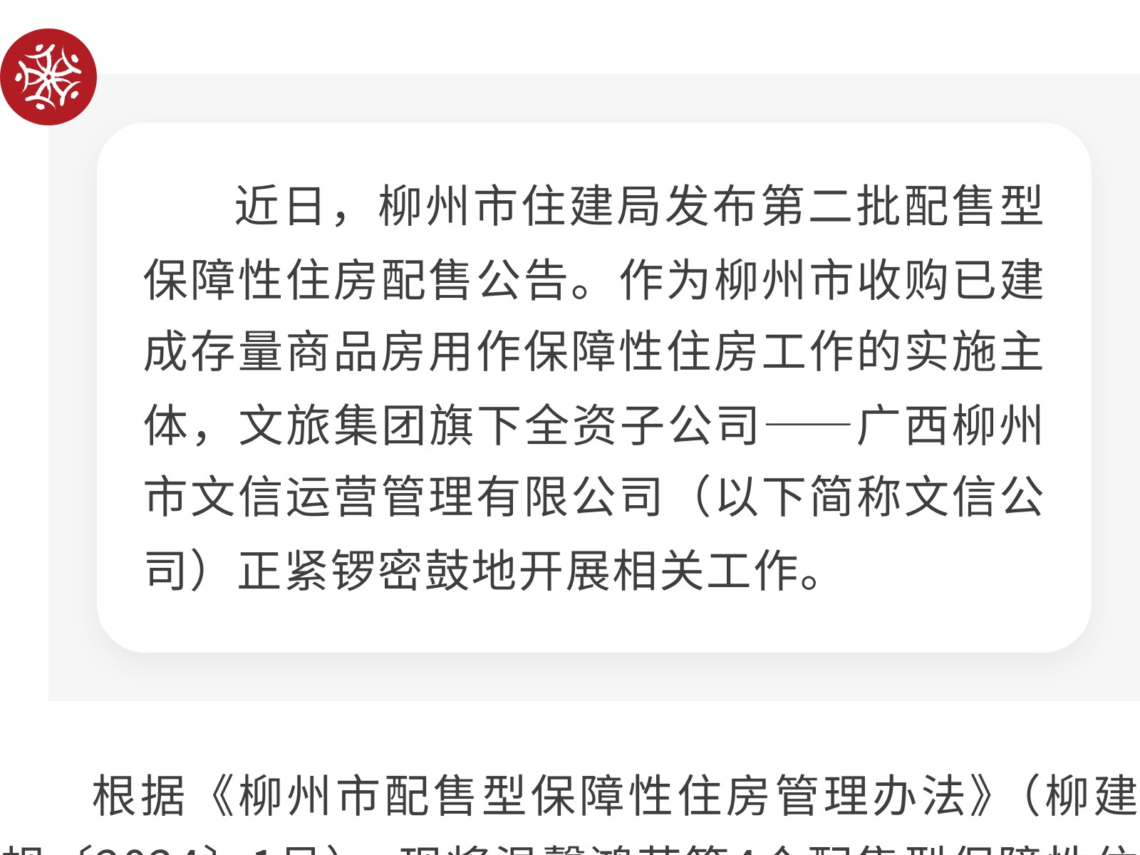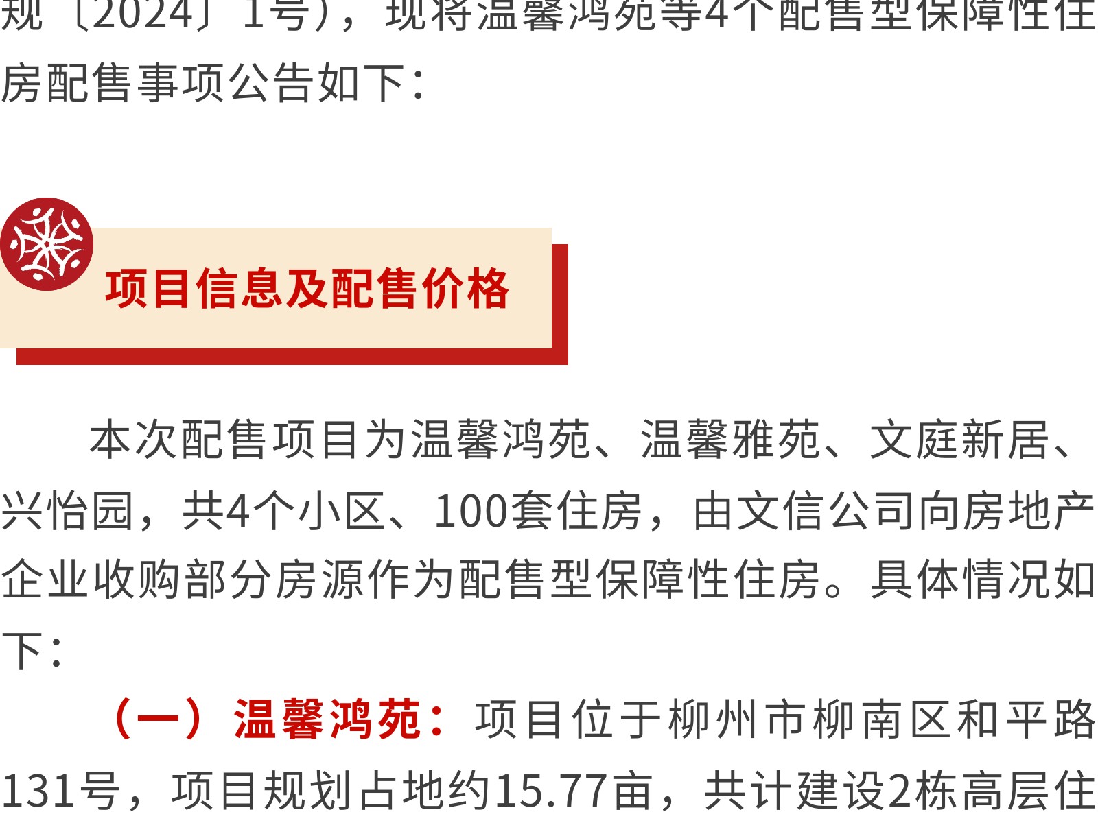 柳州市第二批配售型保障性住房配售公告 發(fā)布時間:2025年11月08日 11時來源:本站原創(chuàng)瀏覽:130 人次