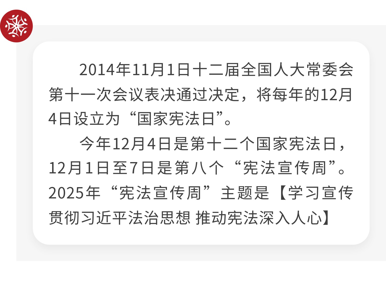 【憲法宣傳周】弘揚憲法精神,守護法治根基。 發(fā)布時間:2025年12月08日 10時來源:本站原創(chuàng)瀏覽:35 人次