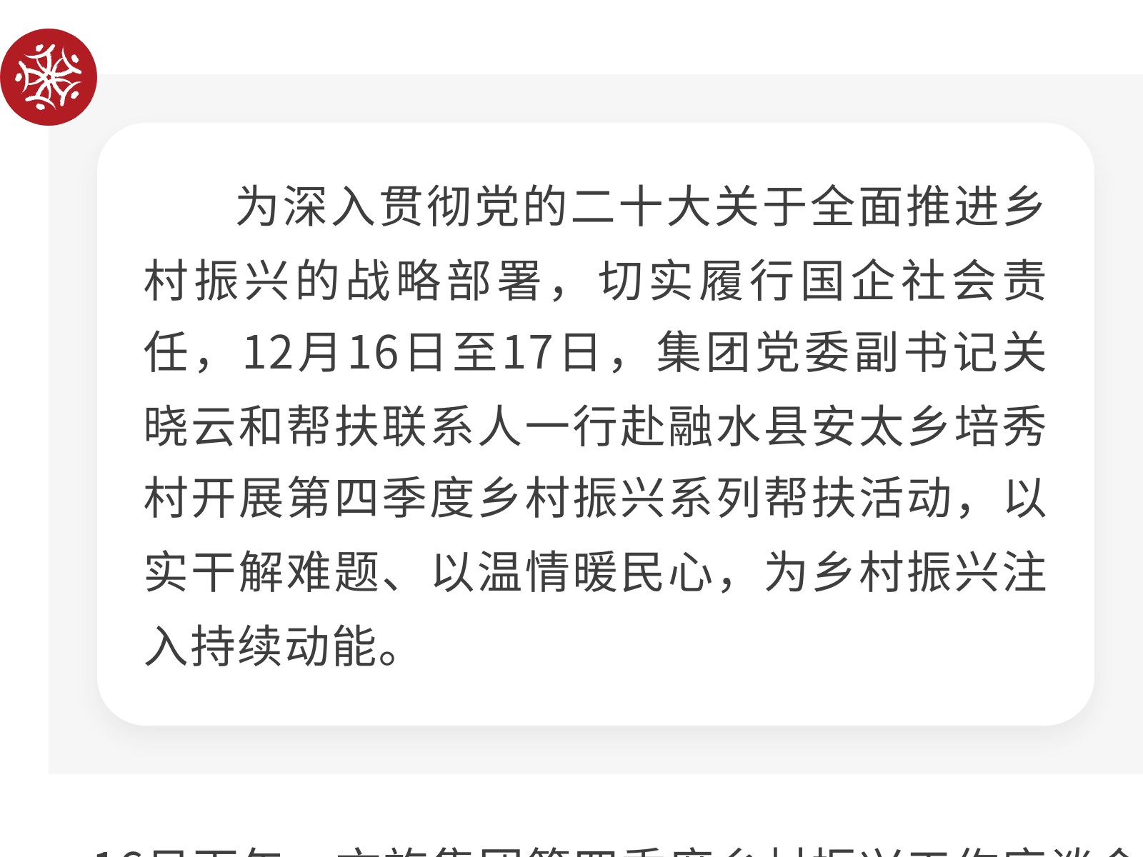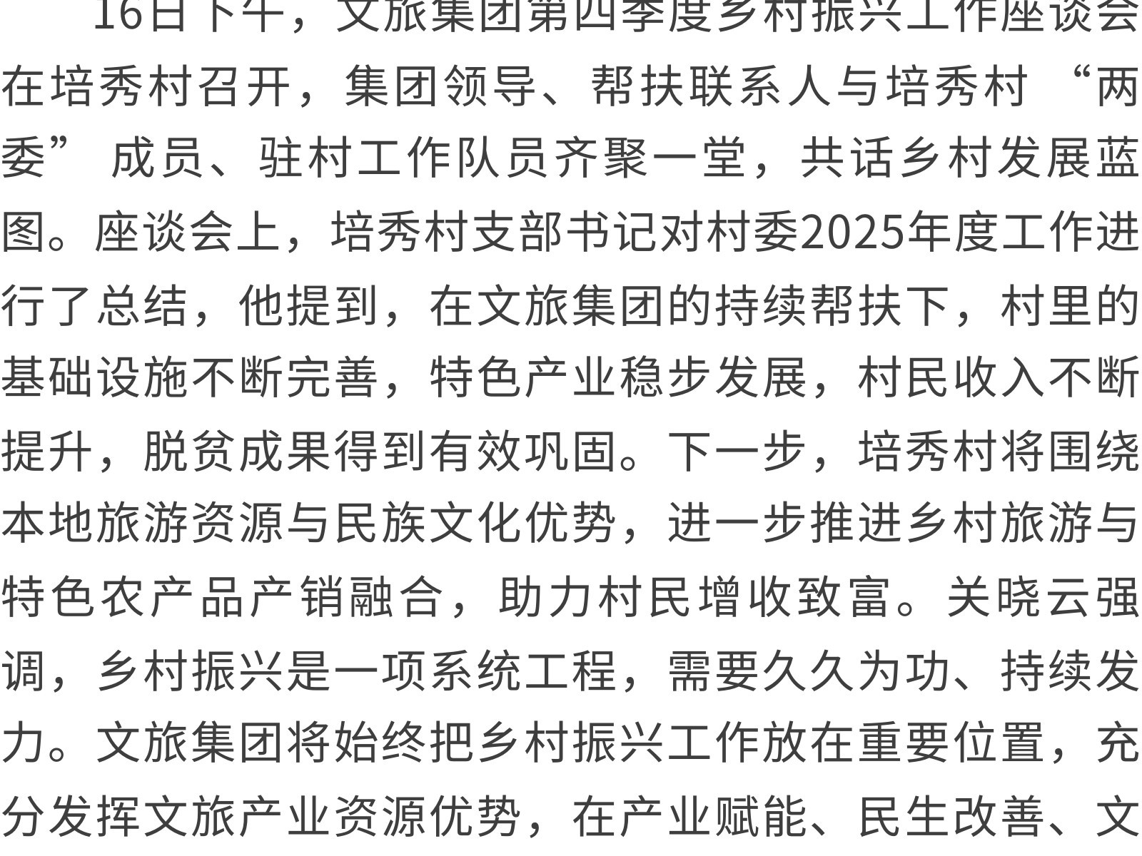 【文旅賦能繪新卷 結(jié)對(duì)幫扶暖心田】文旅集團(tuán)開展第四季度鄉(xiāng)村振興工作 發(fā)布時(shí)間:2025年12月19日 10時(shí)來(lái)源:本站原創(chuàng)瀏覽:56 人次