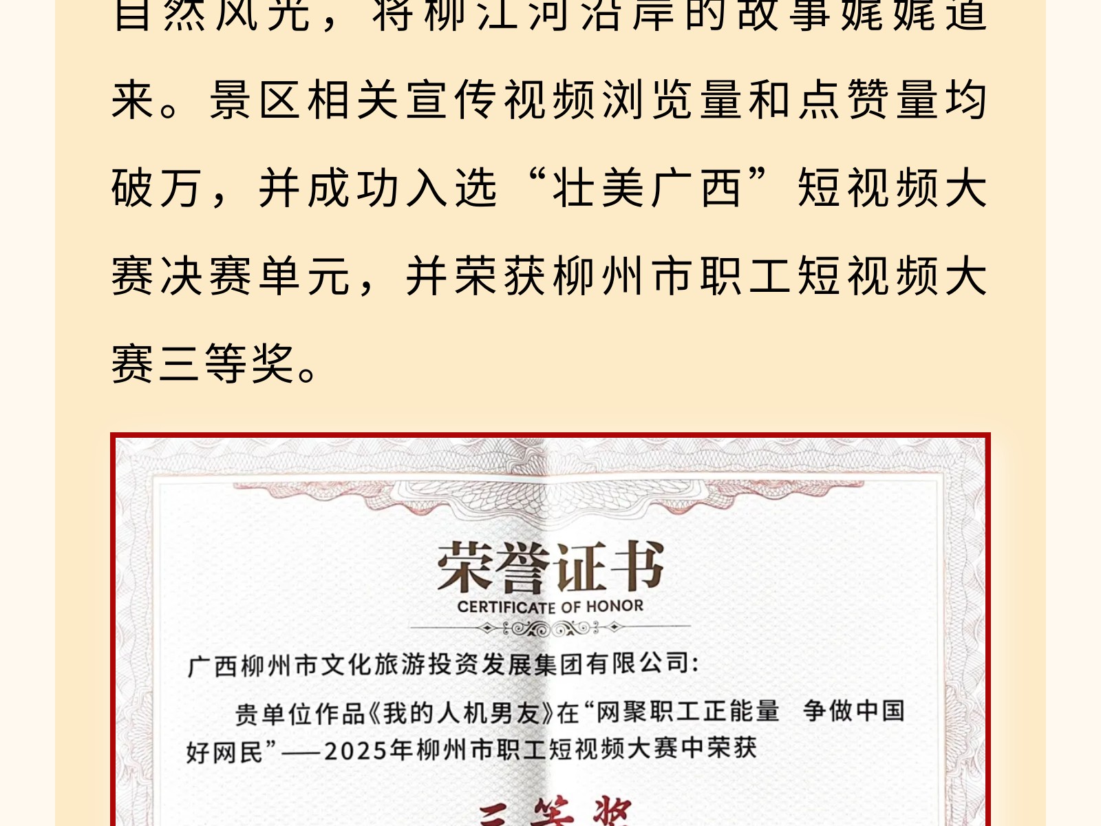 【文旅聚勢2025】碧水映城,風帆勁起——百里柳江公司書寫文旅融合新篇章 發(fā)布時間:2025年12月25日 10時來源:本站原創(chuàng)瀏覽:58 人次