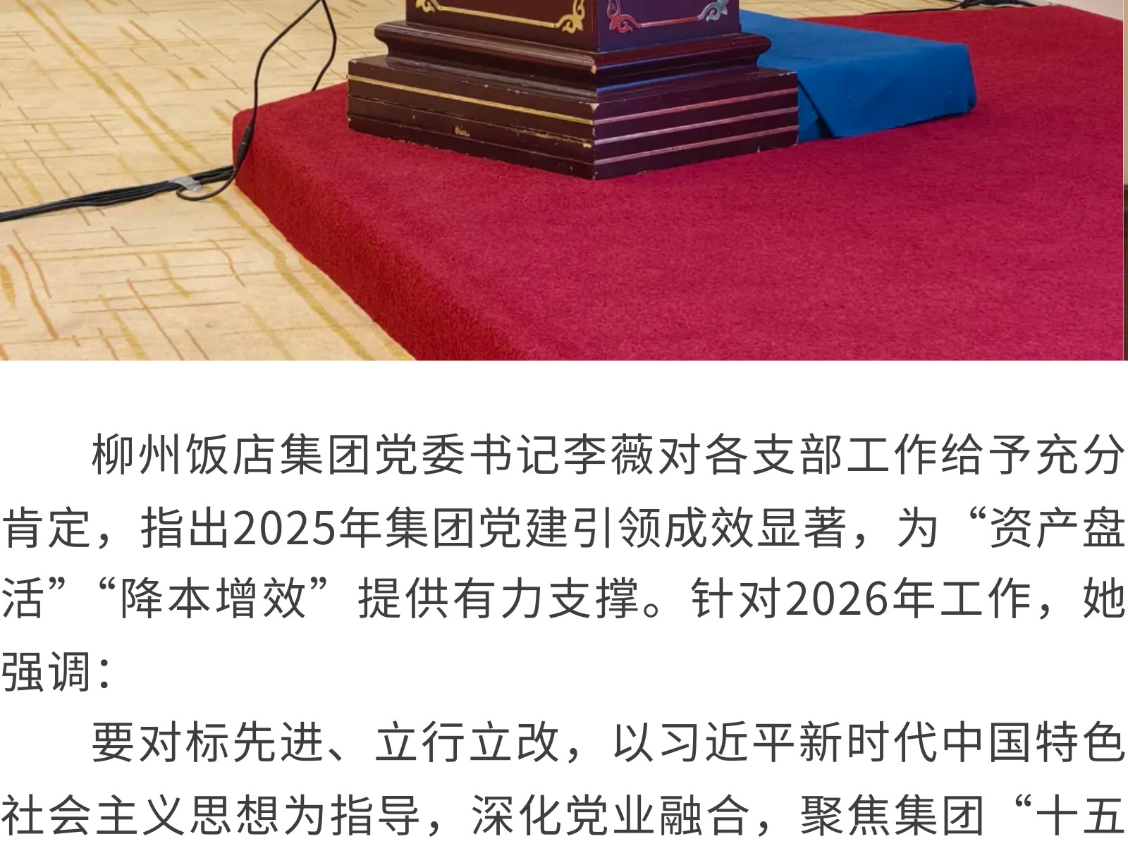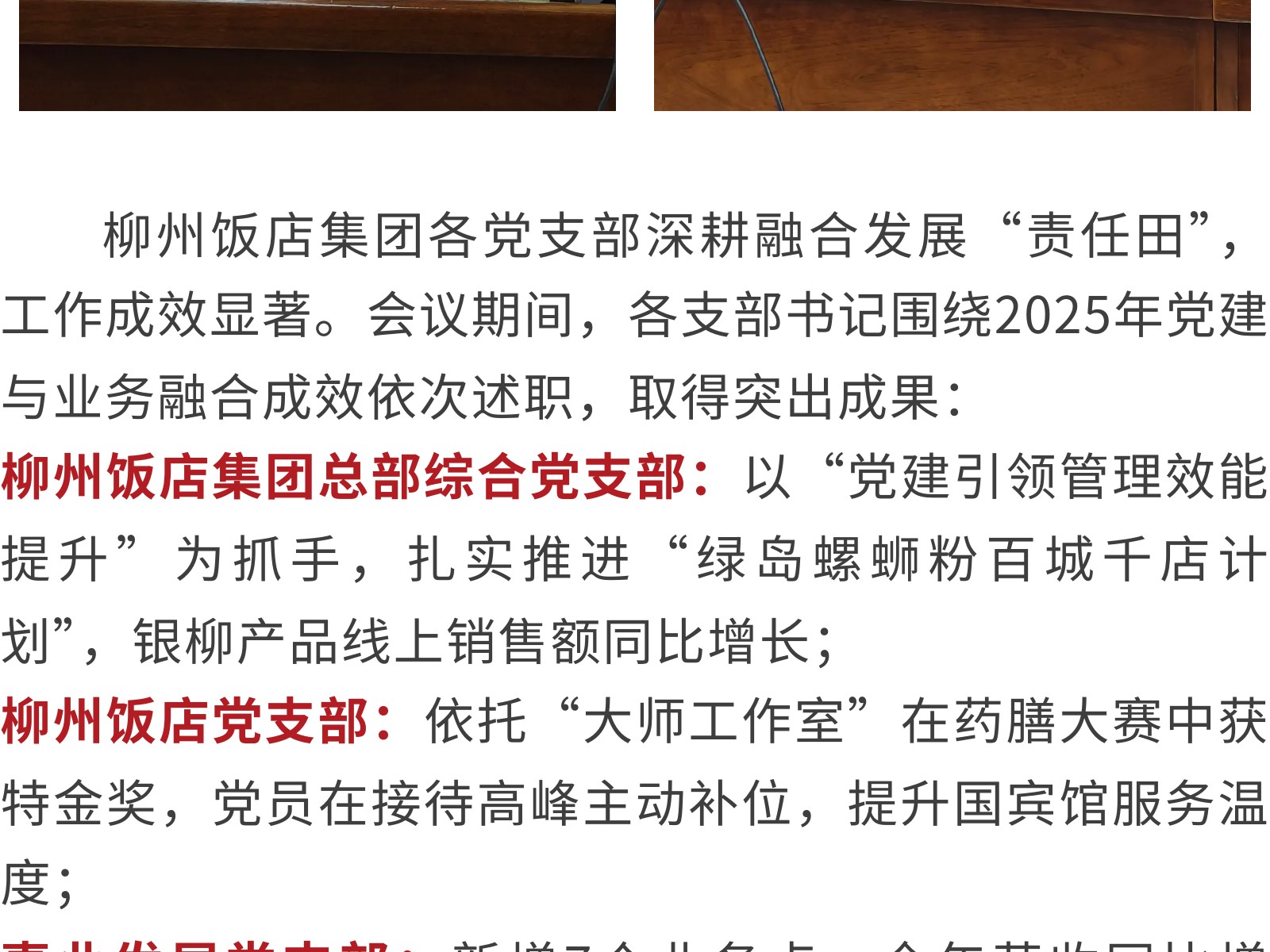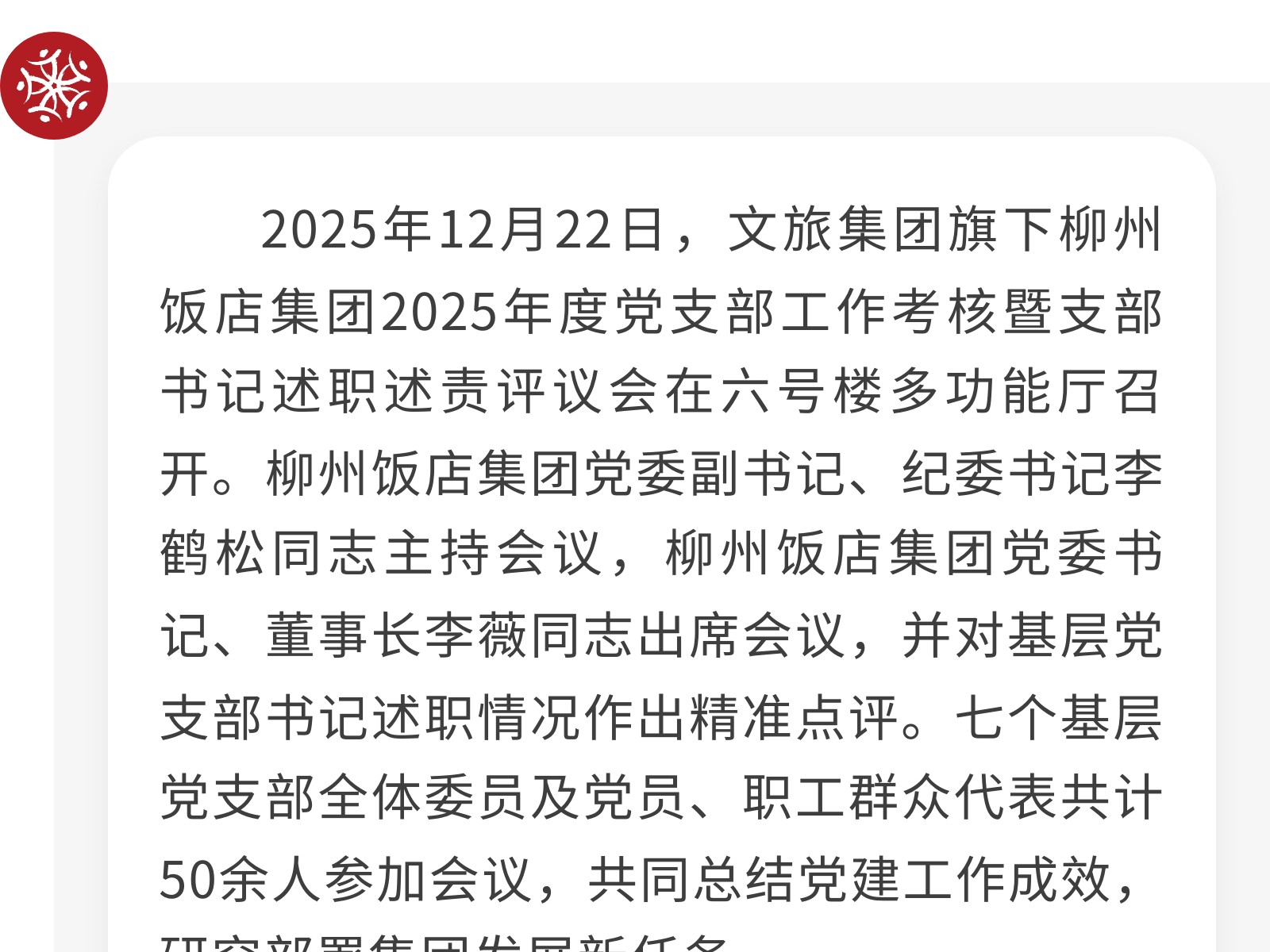 黨建引領(lǐng)聚合力 砥礪奮進(jìn)譜新篇——柳州飯店集團(tuán)2025年度黨支部工作考核暨支部書記述職述責(zé)評議會圓滿召開 發(fā)布時間:2025年12月30日 11時來源:本站原創(chuàng)瀏覽:67 人次