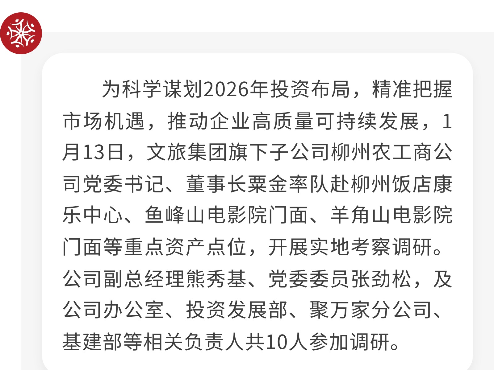 【錨定發(fā)展謀新篇】農(nóng)工商公司實(shí)地考察2026年投資項(xiàng)目 發(fā)布時(shí)間:2026年01月16日 14時(shí)來(lái)源:本站原創(chuàng)瀏覽:33 人次