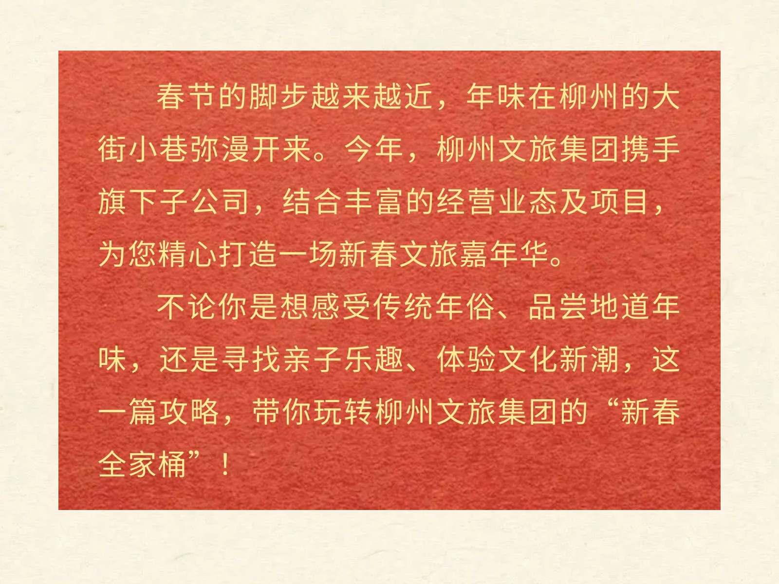 【駿馬奔騰·文旅賀歲】2026文旅集團新春游樂指南,承包你的團圓與歡樂! 發(fā)布時間:2026年01月30日 15時來源:本站原創(chuàng)瀏覽:41 人次