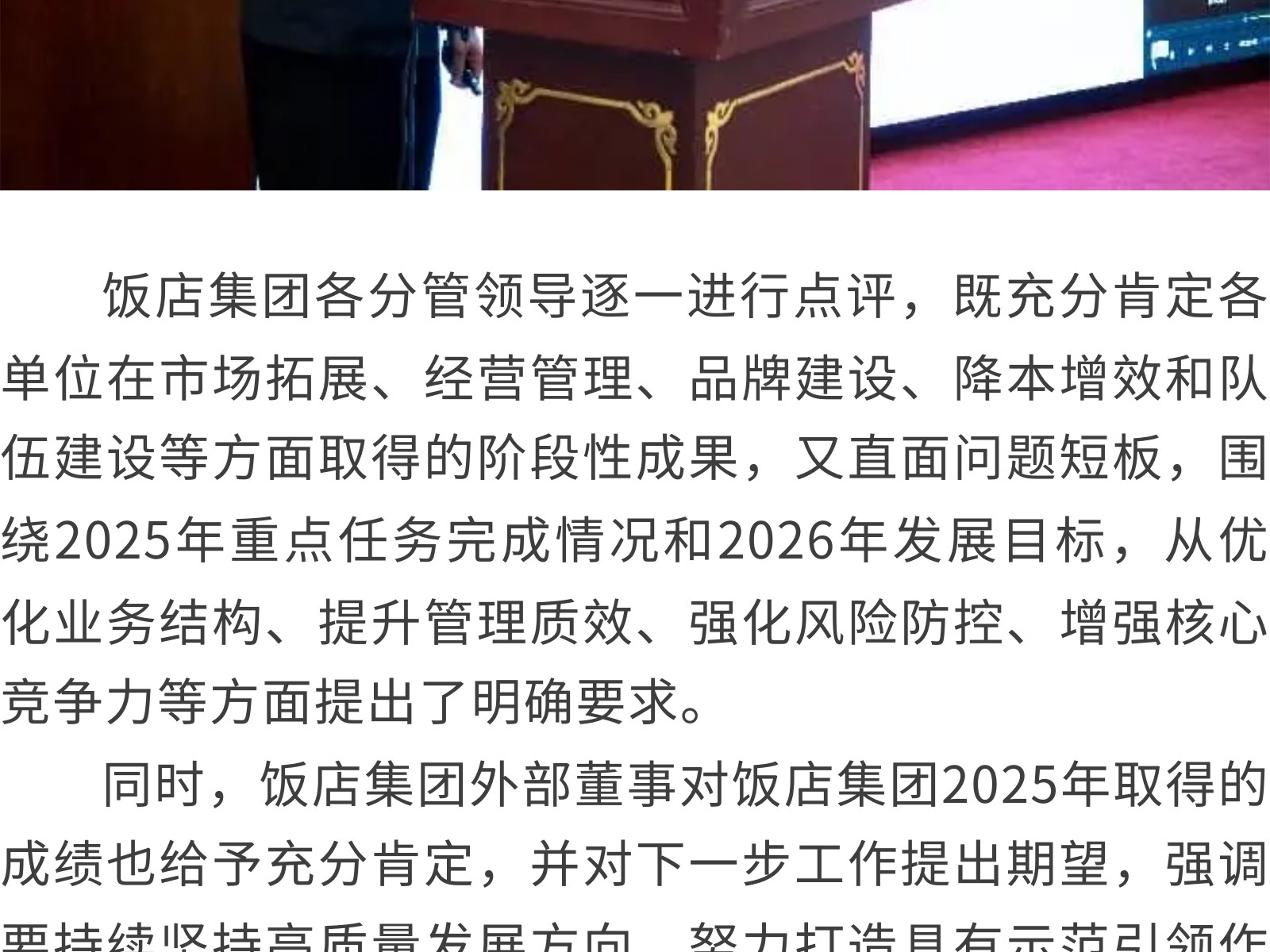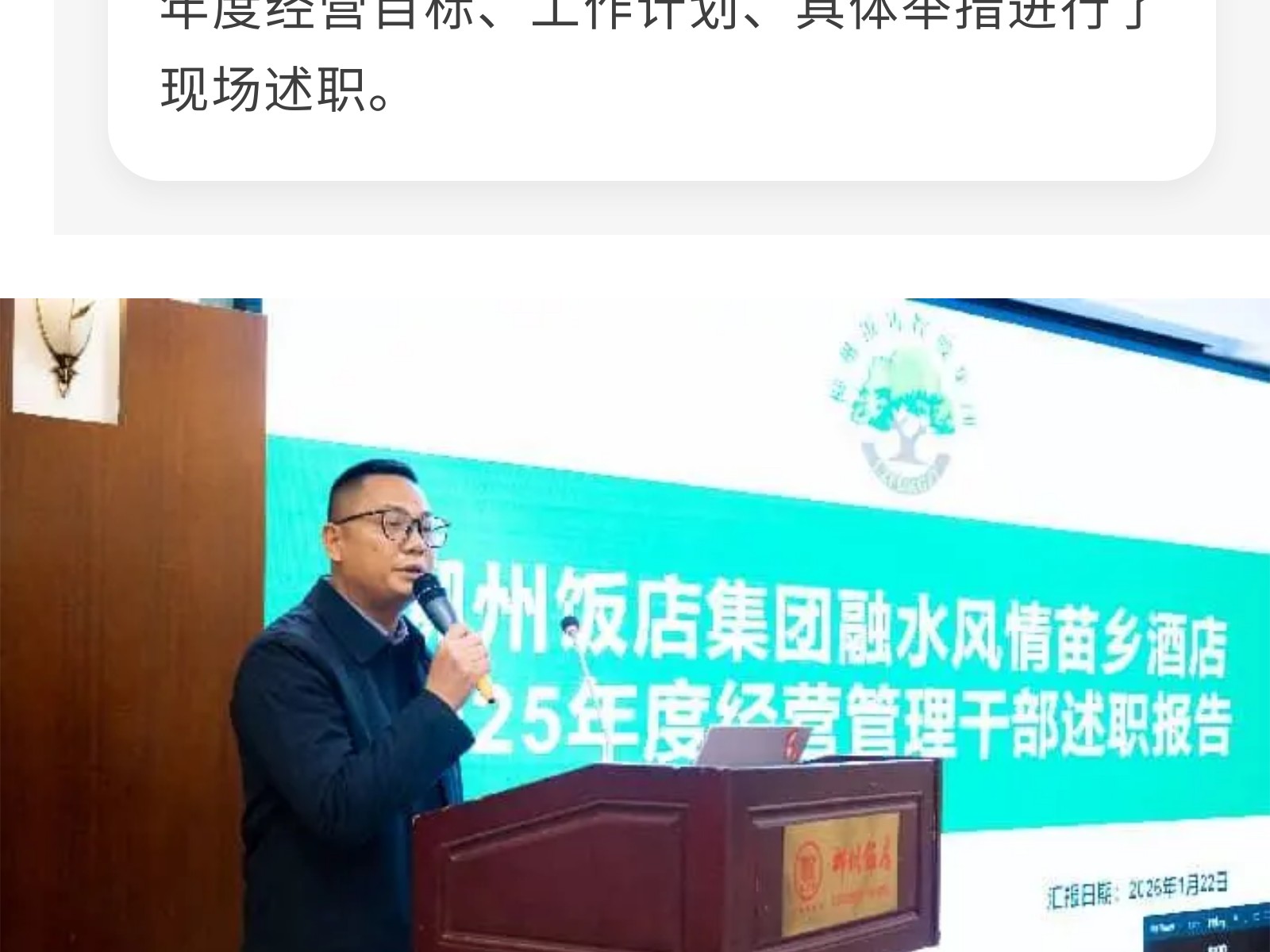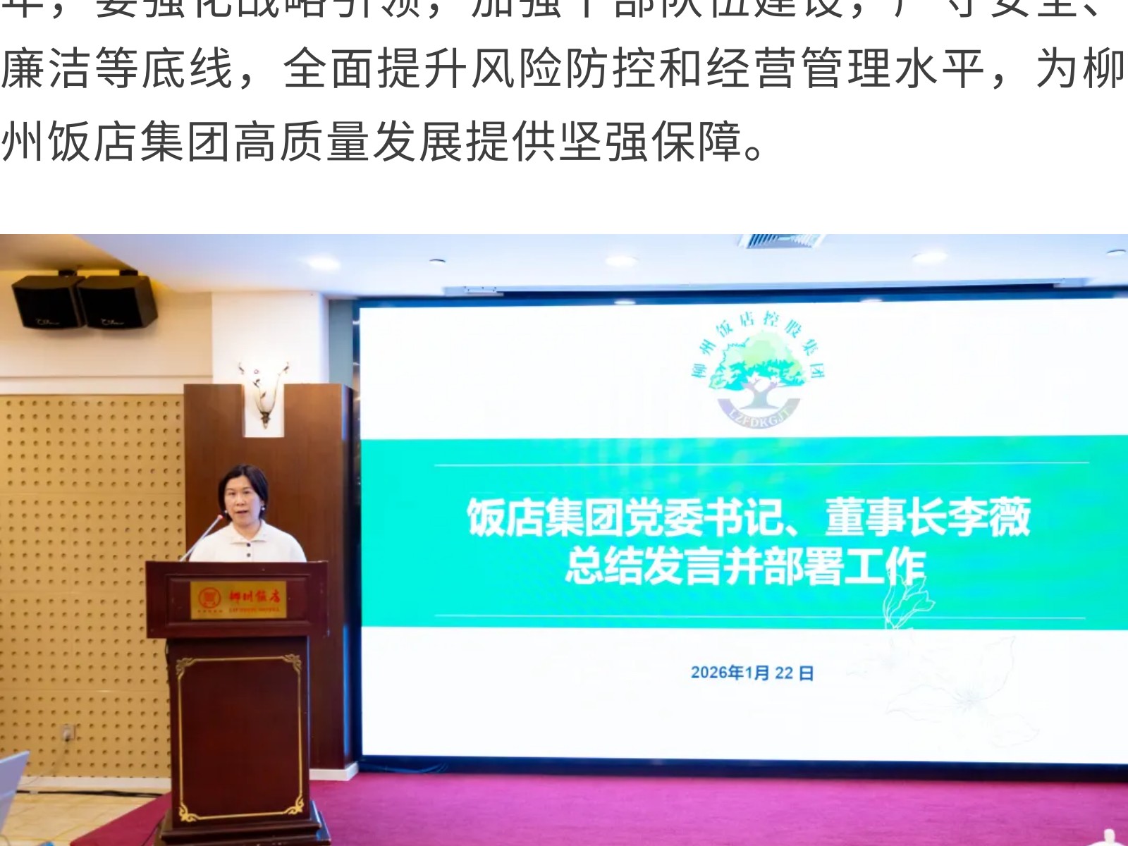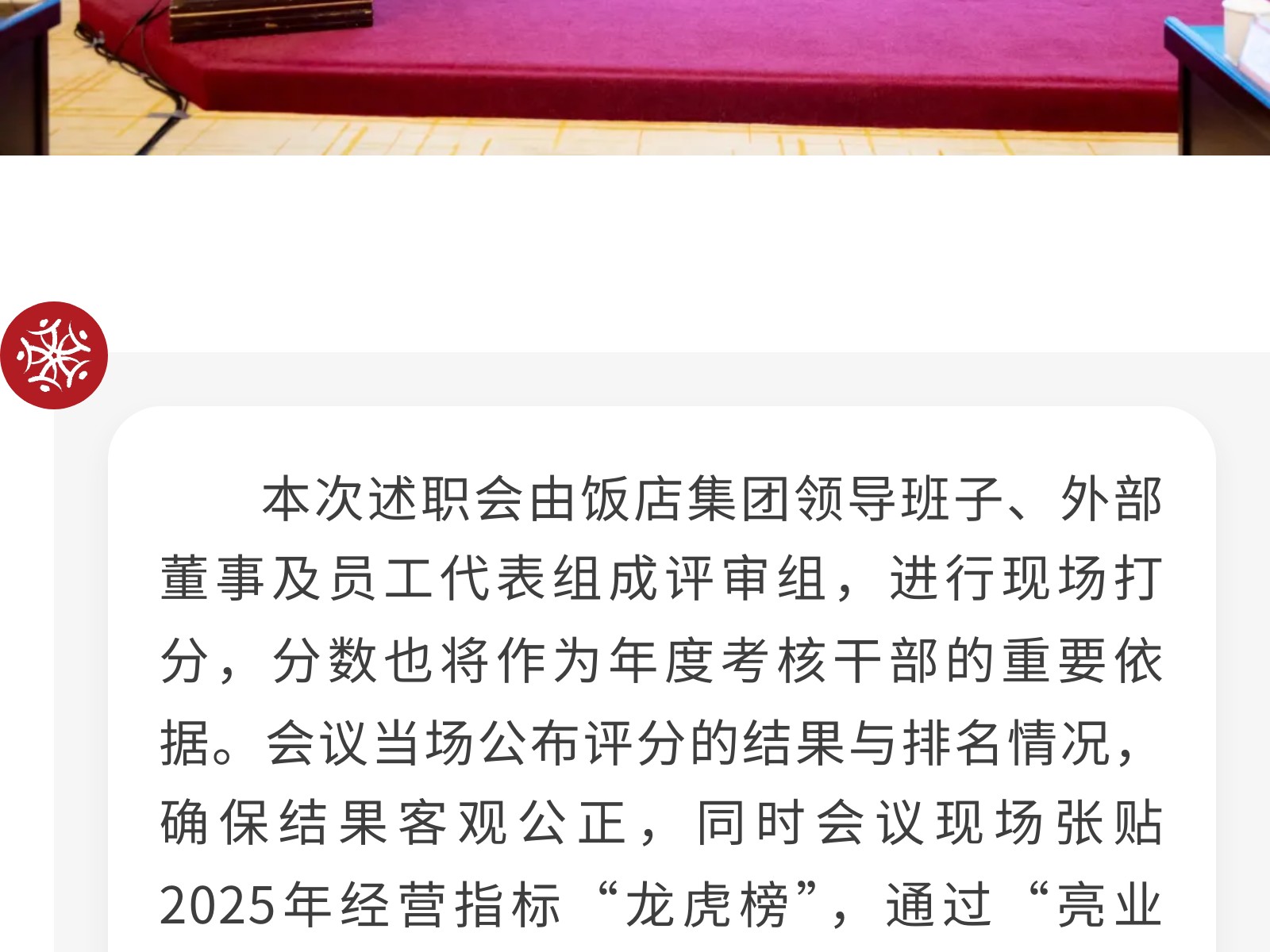 述職亮答卷,乘勢開新局——柳州飯店集團召開2025年經營管理干部述職會 發(fā)布時間:2026年01月29日 10時來源:本站原創(chuàng)瀏覽:38 人次